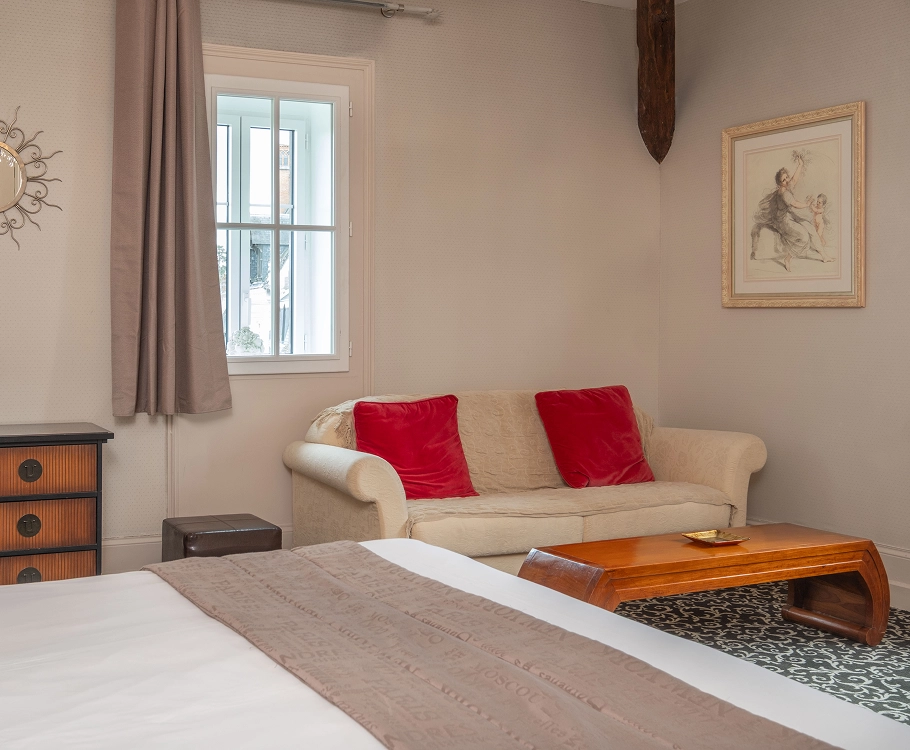 1 chambre au 2e étage côté ville, avec 1 lit king size ou twin et un canapé lit double confortable pouvant accueillir 2 adultes et 2 enfants ou 3 adultes.
