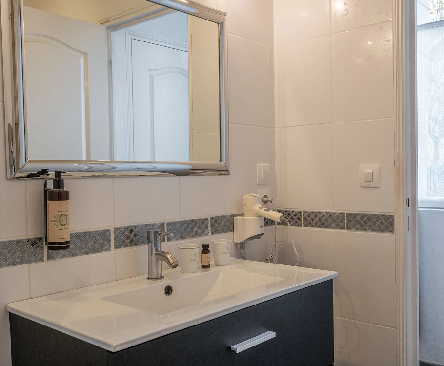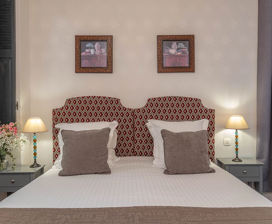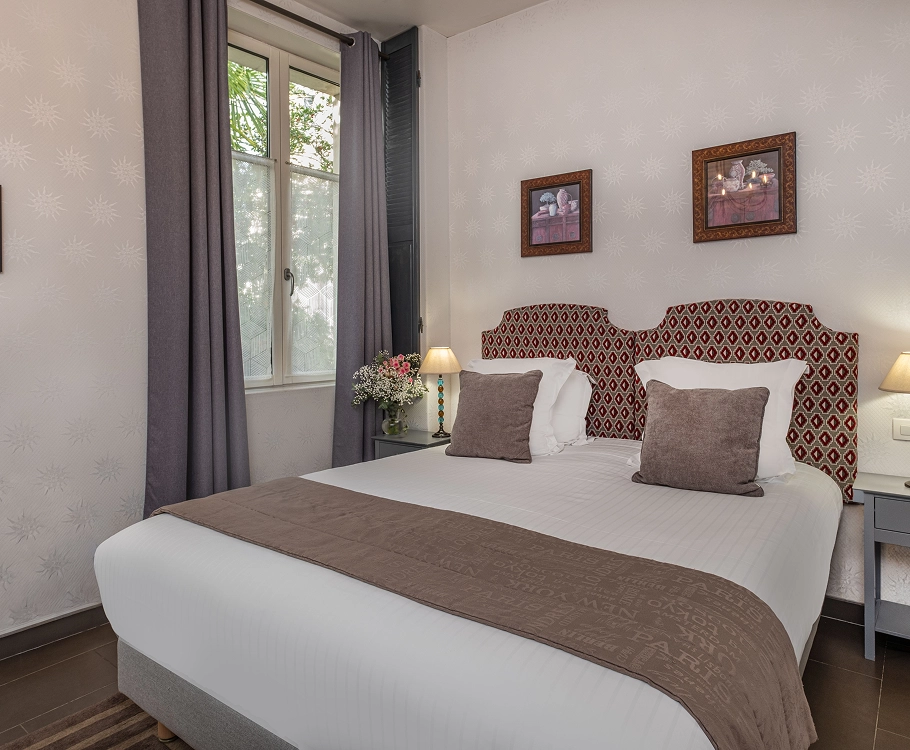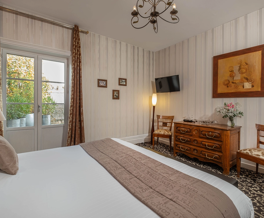 Chambre double située au rez-de-chaussée, sur cour, terrasse privative.