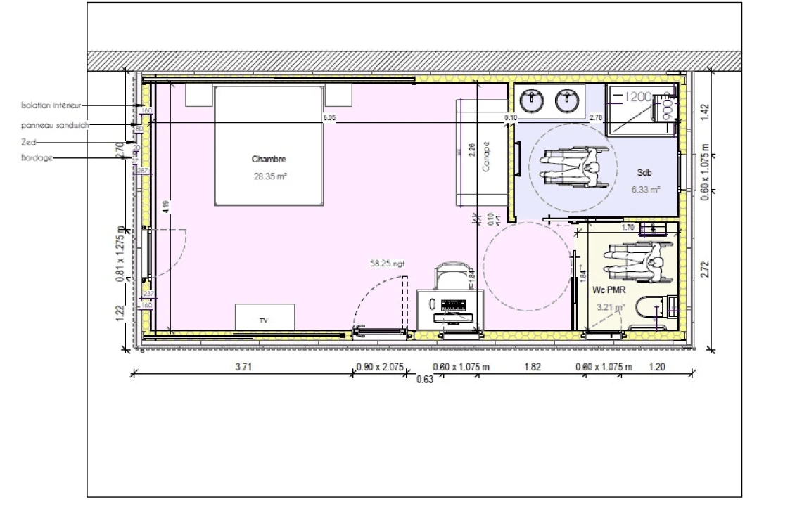 Capacité : 2 adultes + 2 enfants ou 3 adultes.